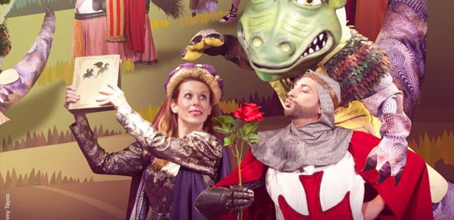 Un rei egoista, un poble lluitador, un Sant Jordi poruc amb el seu cavall blanc i una princesa molt valenta faran gaudir de la tradicional llegenda. Els nens/nes hauran d’ajudar als actors a resoldre l’enigma del drac, fins i tot es faran amics d’ ell.